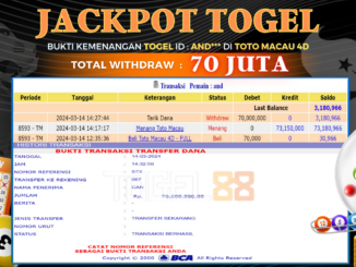 TOGEL88 JACKPOT TOGEL DI TOTO MACAU 4D Rp 70.000.000,- LUNAS MEMBER TOGEL88 MENERIMA PELUNASAN KEMENANGAN JACKPOT TOGEL DI TOTO MACAU 4D Rp 70.000.000,- LUNAS “TOGEL88 […]