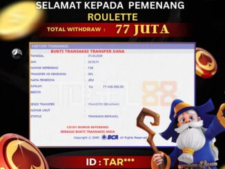 TOGEL88 JACKPOT LIVE CASINO DI ROULETTE Rp 77.000.000,- LUNAS