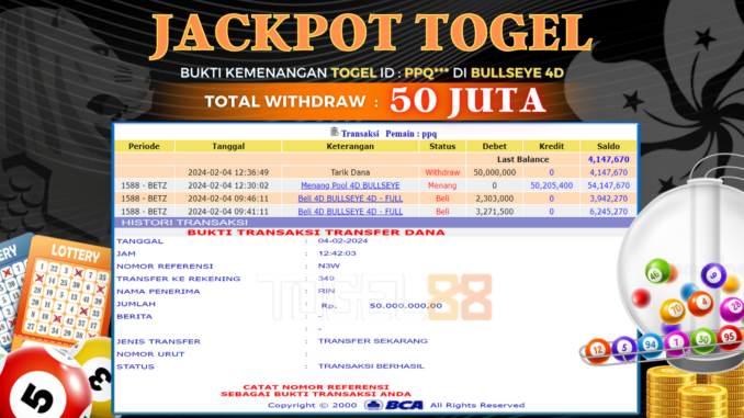 TOGEL88 JACKPOT TOGEL DI BULLSEYE 4D Rp 50.000.000,- LUNAS