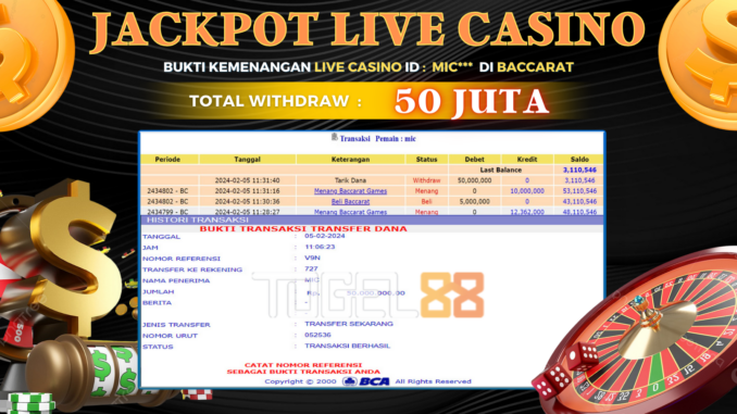 TOGEL88 JACKPOT CASINO di BACCARAT Rp 50.000.000,- LUNAS