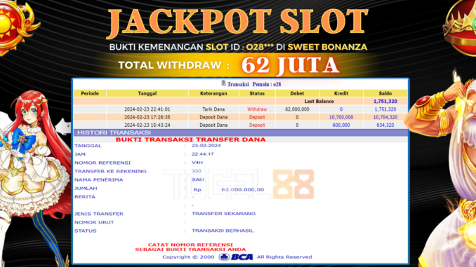 TOGEL88 JACKPOT SLOT DI SWEET BONANZA Rp 62.000.000,- LUNAS