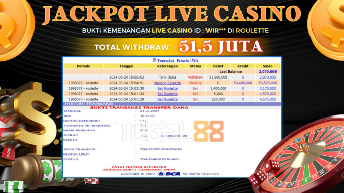 TOGEL88 JACKPOT LIVE CASINO DI ROULETTE Rp 51.500.000,- LUNAS