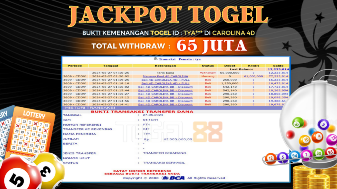 TOGEL88 JACKPOT TOGEL DI CAROLINA 4D Rp 65.000.000,- LUNAS