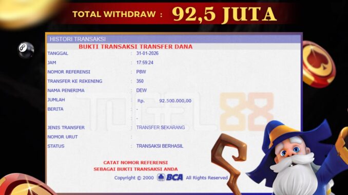 TOGEL88 mengucapkan selamat kepada user id : PEN*** yang telah berhasil mendapatkan jackpot pada permainan LIVE CASINO DI BACCARAT LIVE PROXY. Kemenangan sebesar Rp 92.500.000,-. telah dibayarkan LUNAS oleh pihak TOGEL88 kepada pemilik user id setelah yang bersangkutan mengisi formulir withdraw. Proses pencairan dana berlangsung sangat cepat hanya dalam waktu 5-10 menit sudah berada dalam rekening pemilik user id. Bukti transfer yang dapat anda lihat adalah bukti SAH / VALID yang langsung di dapatkan melalui bukti transaksi dari Bank yang digunakan untuk pengiriman dana pada rekening pemilik user id. Terima kasih kami sampaikan kepada para pengguna setia TOGEL88 yang telah menggunakan situs kami, sebagai Bandar Terpercaya yang pastinya membayar semua kemenangan member hingga lunas. Apakah TOGEL88 PENIPU ? Reputasi “TOGEL88 TERPERCAYA” sudah sangat melekat. puluhan hingga ratusan ribu pengguna setia TOGEL88 tetap menggunakan situs terbesar dan terbaik di Indonesia ini. Hapus rasa was-was dan khawatir anda, kemenangan anda berapapun PASTI dibayarkan hingga lunas.