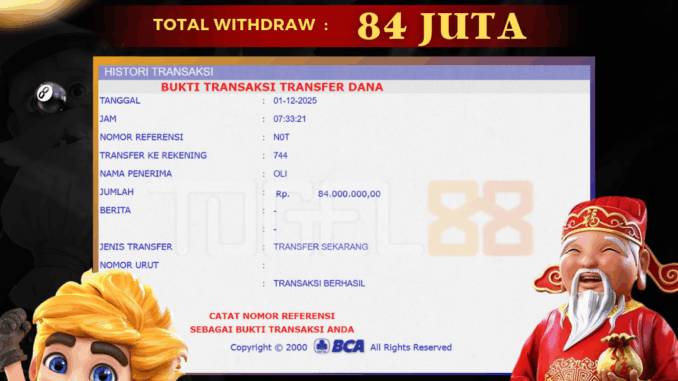 TOGEL88 mengucapkan selamat kepada user id : JAY*** yang telah berhasil mendapatkan jackpot pada permainan SLOT DI GATES OF OLYMPUS. Kemenangan sebesar Rp 84.000.000,-. telah dibayarkan LUNAS oleh pihak TOGEL88 kepada pemilik user id setelah yang bersangkutan mengisi formulir withdraw. Proses pencairan dana berlangsung sangat cepat hanya dalam waktu 5-10 menit sudah berada dalam rekening pemilik user id. Bukti transfer yang dapat anda lihat adalah bukti SAH / VALID yang langsung di dapatkan melalui bukti transaksi dari Bank yang digunakan untuk pengiriman dana pada rekening pemilik user id. Terima kasih kami sampaikan kepada para pengguna setia TOGEL88 yang telah menggunakan situs kami, sebagai Bandar Terpercaya yang pastinya membayar semua kemenangan member hingga lunas. Apakah TOGEL88 PENIPU ? Reputasi “TOGEL88 TERPERCAYA” sudah sangat melekat. puluhan hingga ratusan ribu pengguna setia TOGEL88 tetap menggunakan situs terbesar dan terbaik di Indonesia ini. Hapus rasa was-was dan khawatir anda, kemenangan anda berapapun PASTI dibayarkan hingga lunas.