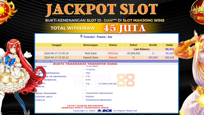 TOGEL88 JACKPOT SLOT DI MAHJONG WINS Rp 45.000.000,- LUNAS