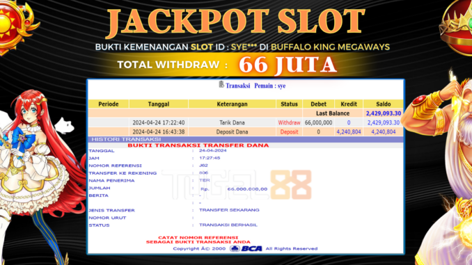 TOGEL88 JACKPOT SLOT DI BUFFALO KING MEGAWAYS Rp 66.000.000,- LUNAS