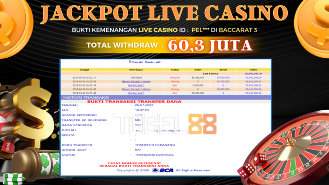 TOGEL88 JACKPOT LIVE CASINO DI BACCARAT 3 Rp 60.300.000,- LUNAS